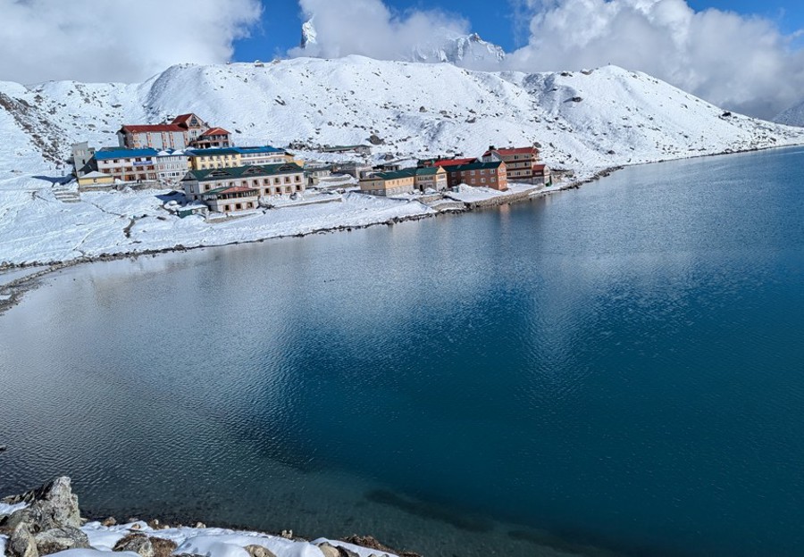 We’ll land the helicopter over the shimmering, turquoise waters of the Gokyo Lakes, a hidden gem of the region that most trekkers spend days trying to reach.