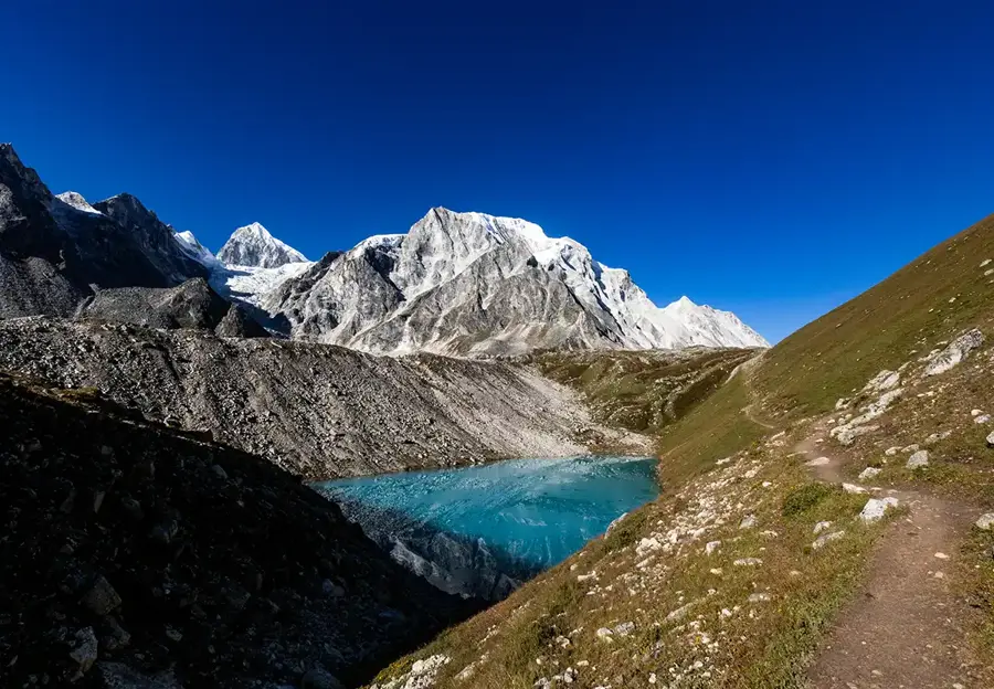 The terrain is rocky, but views of glaciers and glacial lakes down below will bring some respite to the aching muscles. Keeping your determination at an all-time high, you should tread slowly Larkya Glacial Valley in order to avoid altitude sickness.