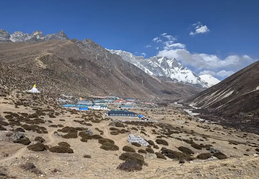 Dingboche welcomes us with its peaceful atmosphere and stone houses nestled against the towering peaks. This is where we'll spend two nights to properly acclimatize.