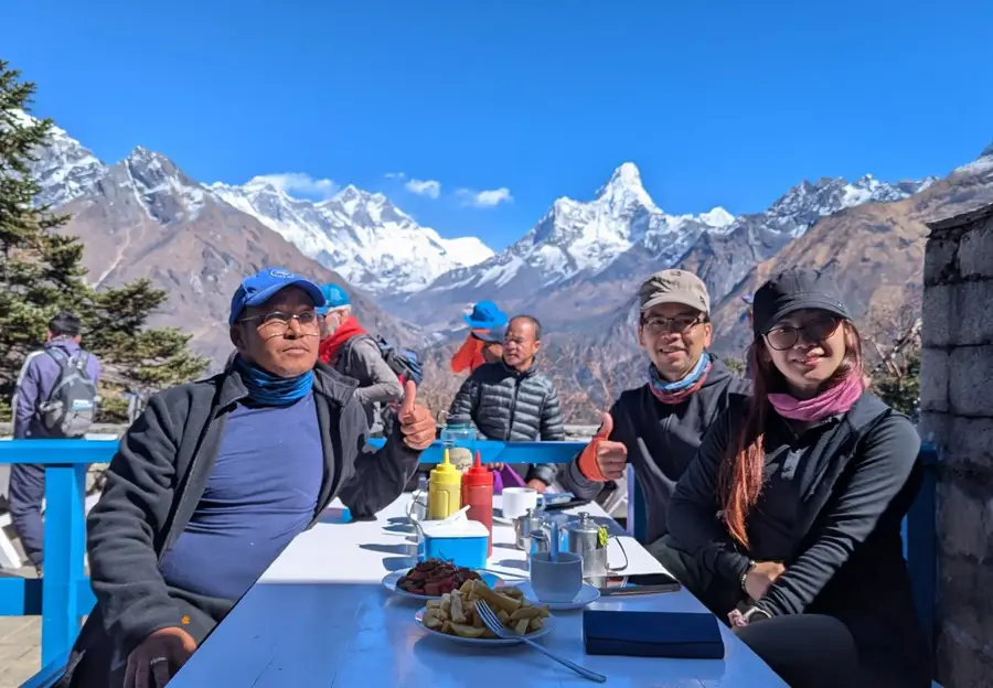 The highlight of this trip? Breakfast at Hotel Everest View, perched at 3,880 meters. Here, you will get to savor a warm meal while gazing at the towering figures of Everest, Nuptse and Lhotse. The silence is peaceful, the air is crisp and the sense of awe you feel at the feet of these mountains is overwhelming.