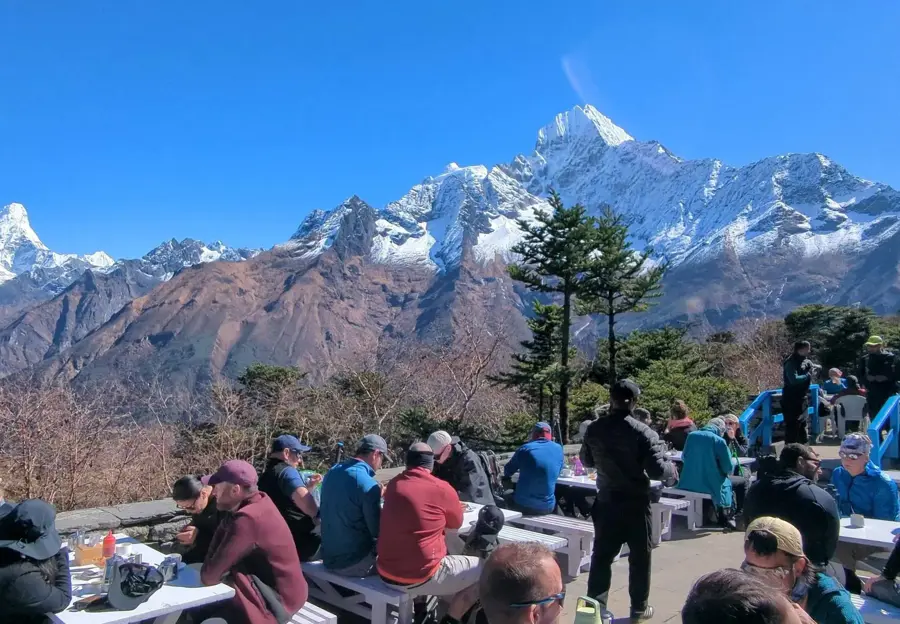 By 8:00 AM, you will be at the iconic Hotel Everest View, the highest-placed hotel in the world. As you dig into your warm, hearty breakfast, you can gaze at the towering Mount Everest, Nuptse, and Lhotse that loom over the horizon.