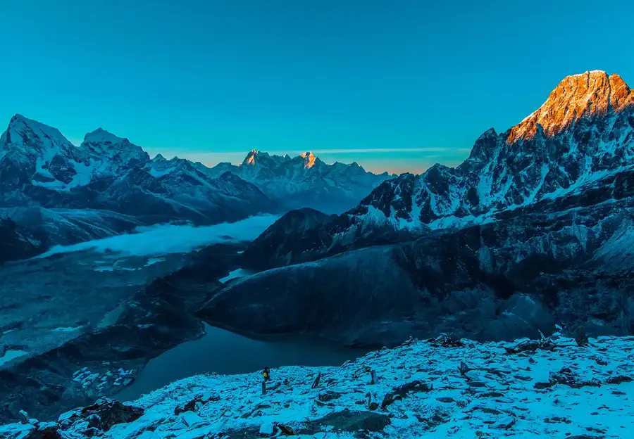 Set about on a challenging yet rewarding hike to Gokyo RI, a vantage point renowned for its awe-inspiring panoramic views. Ascend to the summit and witness the majestic Himalayan giants, including Everest, Cho Oyu, and an array of other towering peaks. Immerse yourself in the breathtaking beauty of the surrounding landscape and capture unforgettable moments. After soaking in the magnificent views, make your way back to Gokyo, where a cozy lodge awaits you.