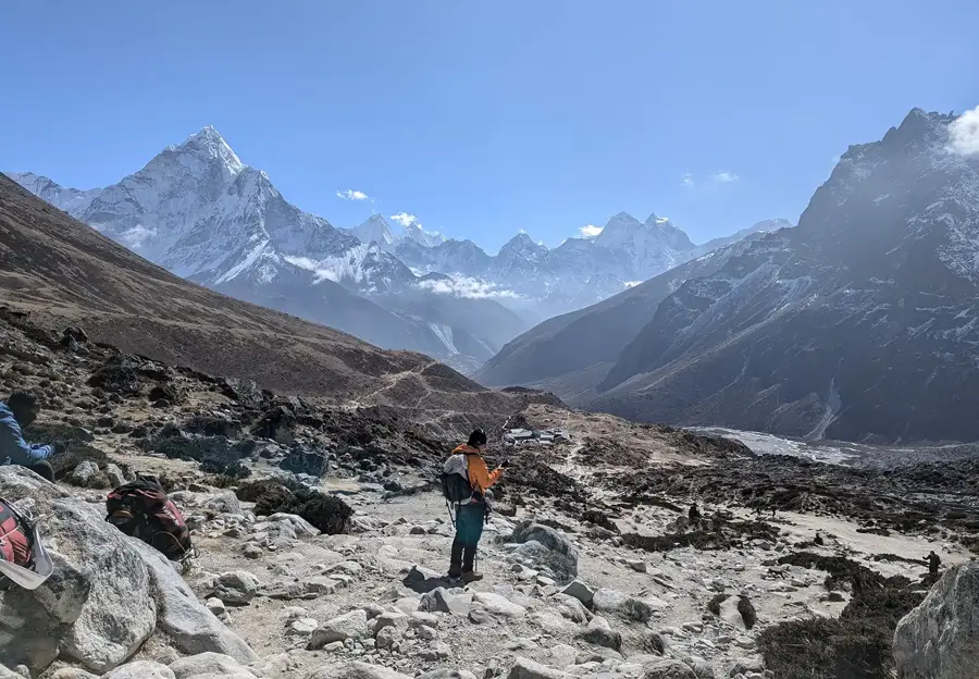 Later as you descend to Gorakshep for breakfast, you'll hurriedly move through your photo album to relive the moment you just experienced two hours earlier. With the regained feeling of beauty still stirring in your heart, you begin your next descent towards Pheriche.