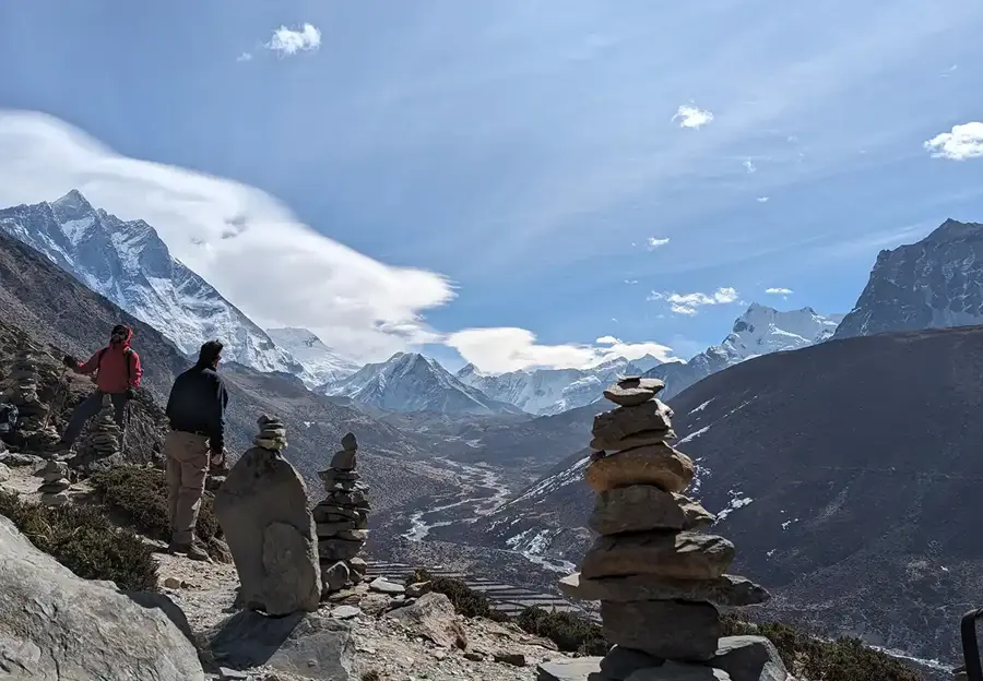 Further on, you'll ascend the vantage point of Kalapatthar well before dawn. You'll be ready with your camera as you witness the first rays of the sun illuminate the mountain giants. It's an awe-inspiring memory of Khumbu that'll remain with you forever. After a photography frenzy, you turn your attention to the return journey.