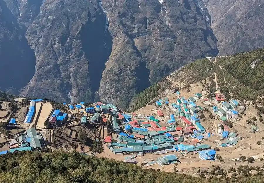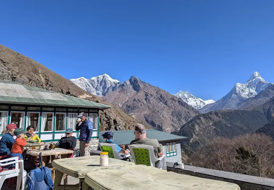 Today is also your chance to catch some breath and let your body adjust to the thinner air at this altitude. During the day you can hike up to Hotel Everest View, for jaw-dropping glimpses of Mount Everest itself. And if time provides you can wander around the shops, check into a bakery or a cafe, and indulge in a treat.