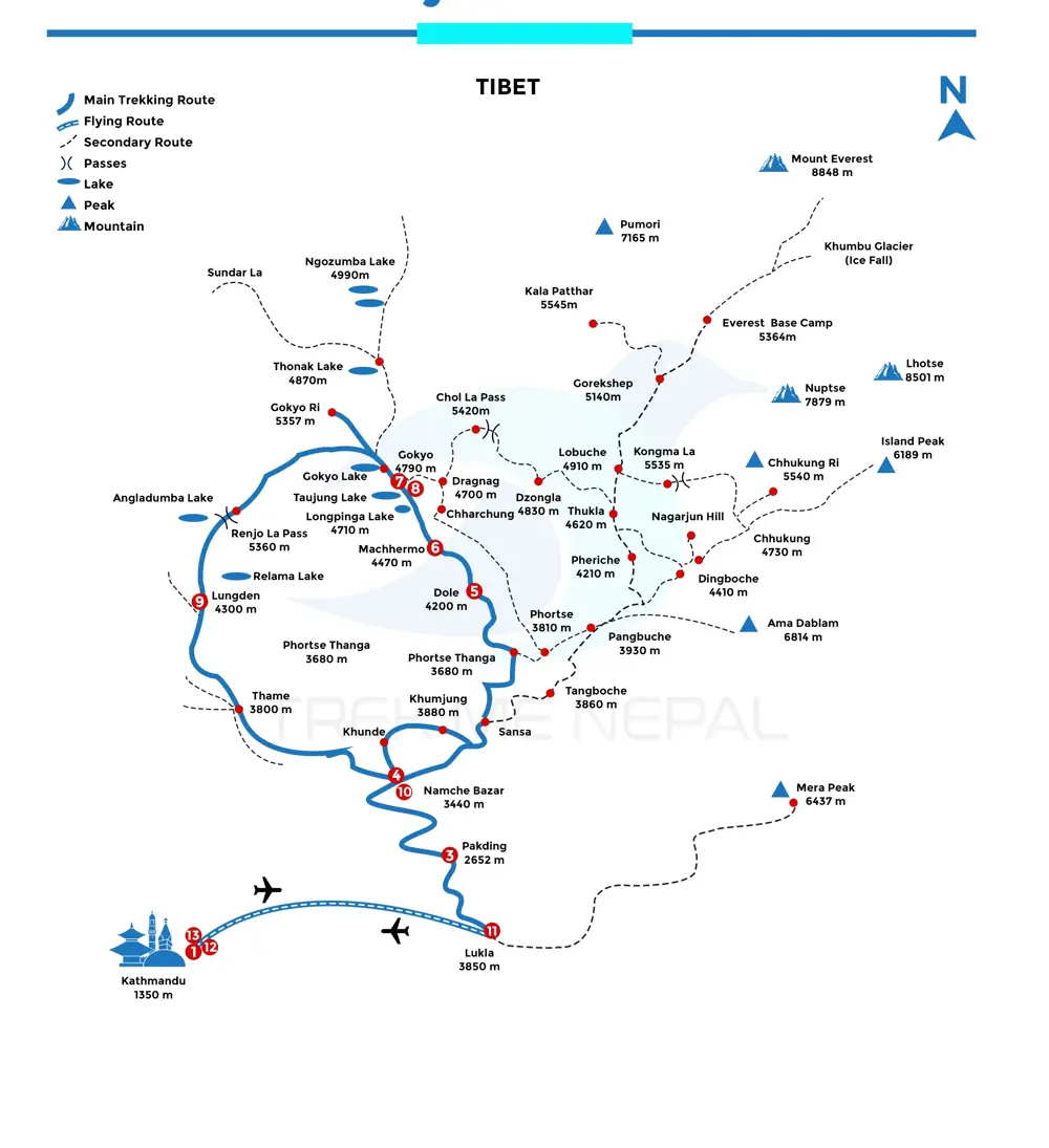 This carefully crafted trek takes you beyond the classic trails, guiding you to the stunning Gokyo Lakes, across the breathtaking Renjo La Pass, and through some of the most beautiful landscapes in the Himalayas.