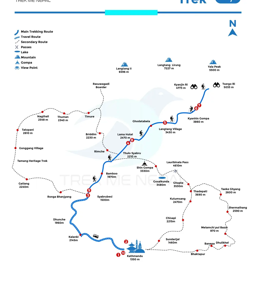 Embark on an 11-day adventure in Nepal's captivating Langtang region, reaching up to 3,870m altitudes. Begin with a scenic drive from Kathmandu to Syabrubesi. Trek through enchanting forests and villages