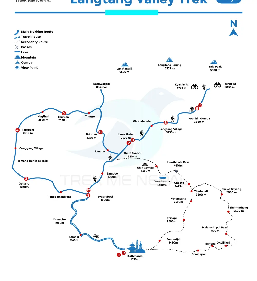 The Tamang people, an indigenous ethnic group in Nepal, have preserved their lifestyle for centuries, making this trek an excellent opportunity to experience their culture firsthand. The trail leads to various attractions, including hot water springs, sacred sites for Hindus and Buddhists, cultural villages, and the highest peaks in Nepal. It also passes through Langtang National Park and wetlands.